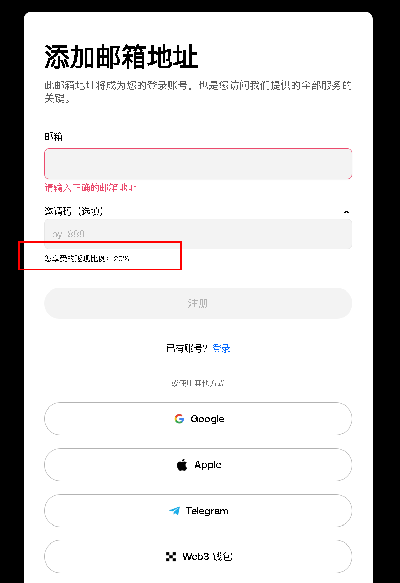 使用上面注册,即享20%终身返佣 + 新人盲盒。