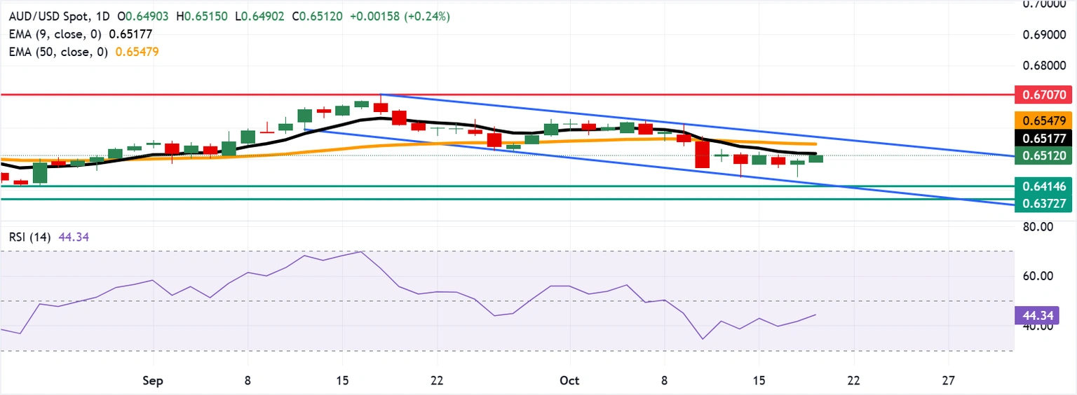 若反弹力度不足,汇价可能重新下探通道下沿0.6430一线,进一步支撑位在8月低点0.6414及0.6370区域。